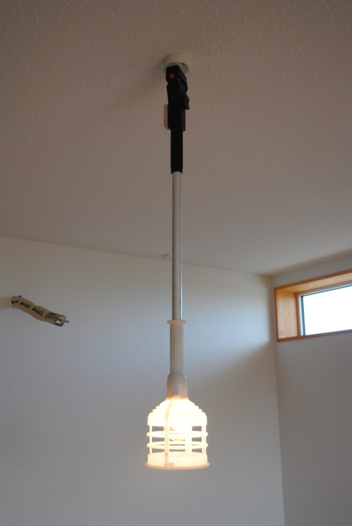 ところで、この部屋に下がっている照明は? ここはお客様が持ち込みの照明がつく場所で、動作確認ができないため、このような検査用の照明をつけています。