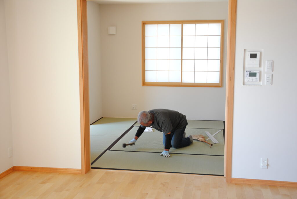 クリーニング前に行う作業を全て終え、一つの大きな儀式でもあるハウスクリーニング。その後に行う作業の一つが、畳入れです。