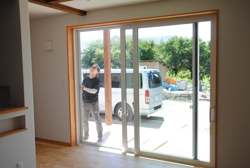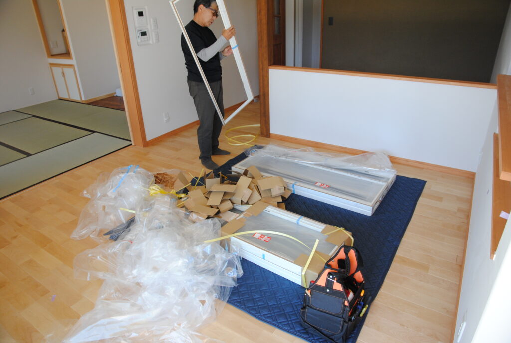 完成後に行うもう一つの作業が、網戸取り付け。こちらも事前に窓枠を採寸し、オーダーメイドで作ります。