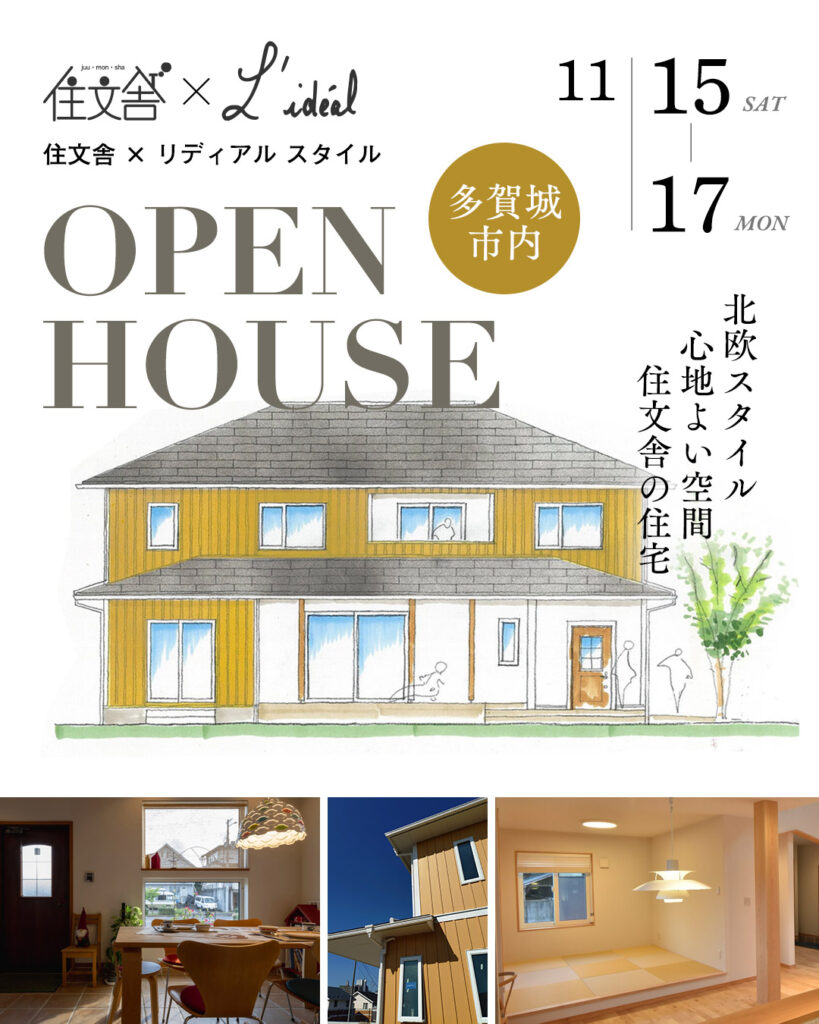 『小さな幸せを創り、住み継がれる家〜北欧スタイルのくらし〜』をコンセプトに、丁寧なくらしづくりを心がけている「住文舎」より、オープンハウス開催のお知らせです。