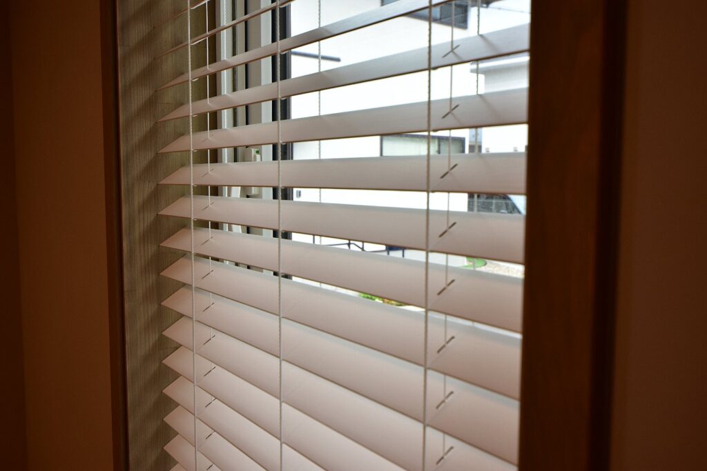上の写真は、木製ブラインドですが、素材は竹、木製よりも薄く、軽く、アルミのような軽快な動きをします。日よけと目線の遮断を考え、セレクトされた事例です。