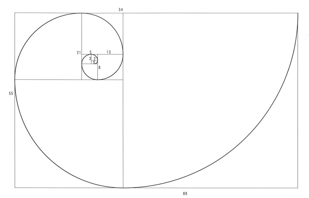 この数列で描かれる曲線は、世界一美しいとされ、数列の後半になる程、黄金比(1:1.618)に近づいてきます。