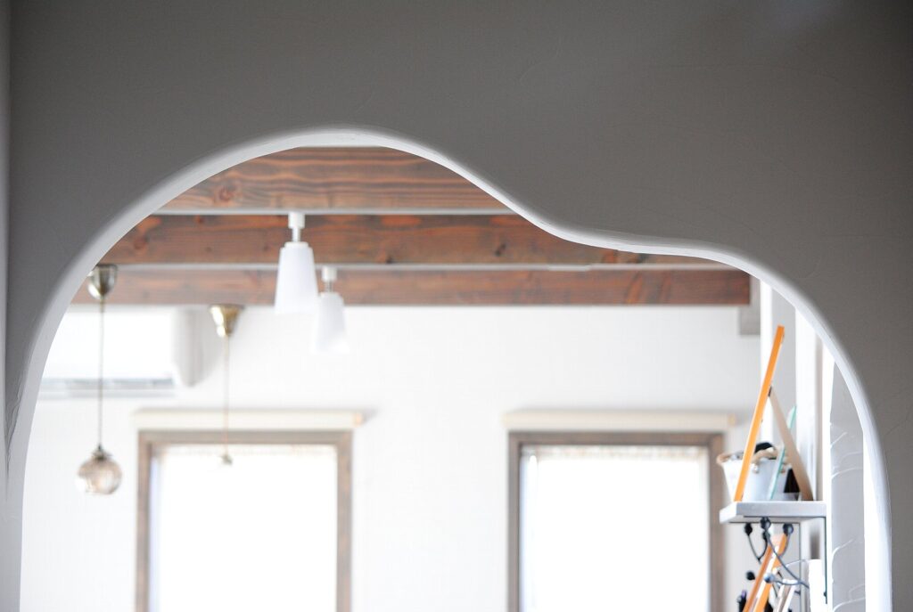 特にアールの下がり壁などは、まずは手描きでラフスケッチを描くほうが、やはり仕上がりもきれい。人の手で描く曲線は、うまい下手は関係なく、自然を感じる有機的な線になります。